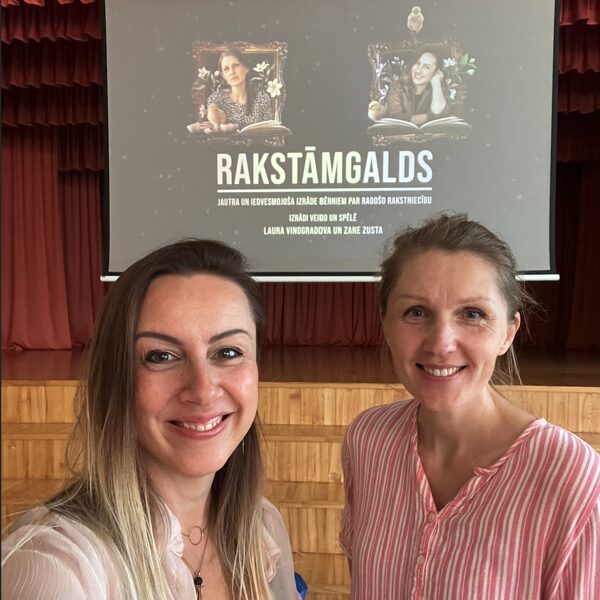 Rakstnieces Laura Vinogradova un Zane Zusta izveidojušas interaktīvu nodarbību sākumsskolas vecuma bērniem, kurā atainots radošās rakstīšanas process. Līdzdarbojoties skolēni pieredzēs, kā rakstnieki no šķietami nekā rada stāstu, kuram just līdzi, iemīlēt un pat pasniegt balvas.